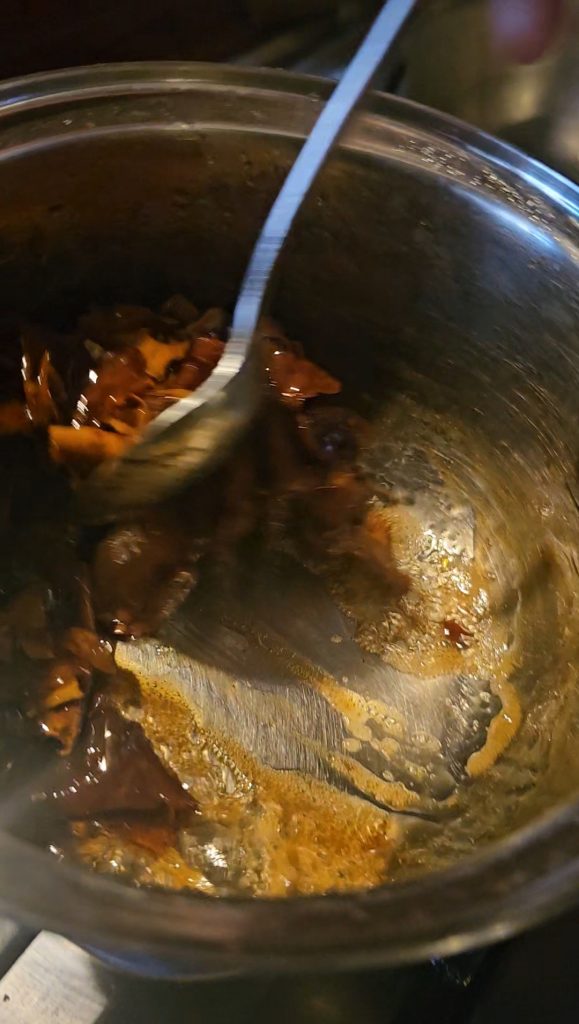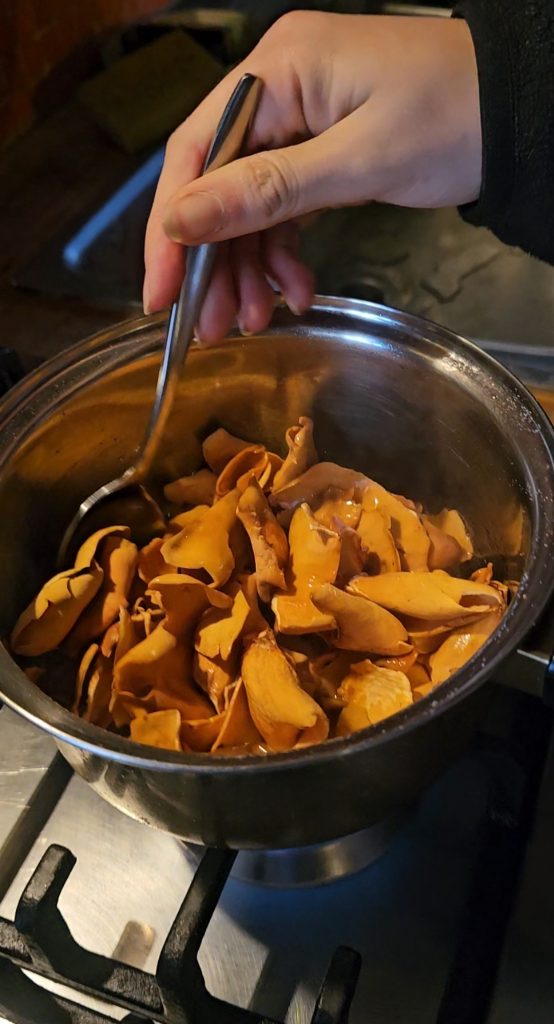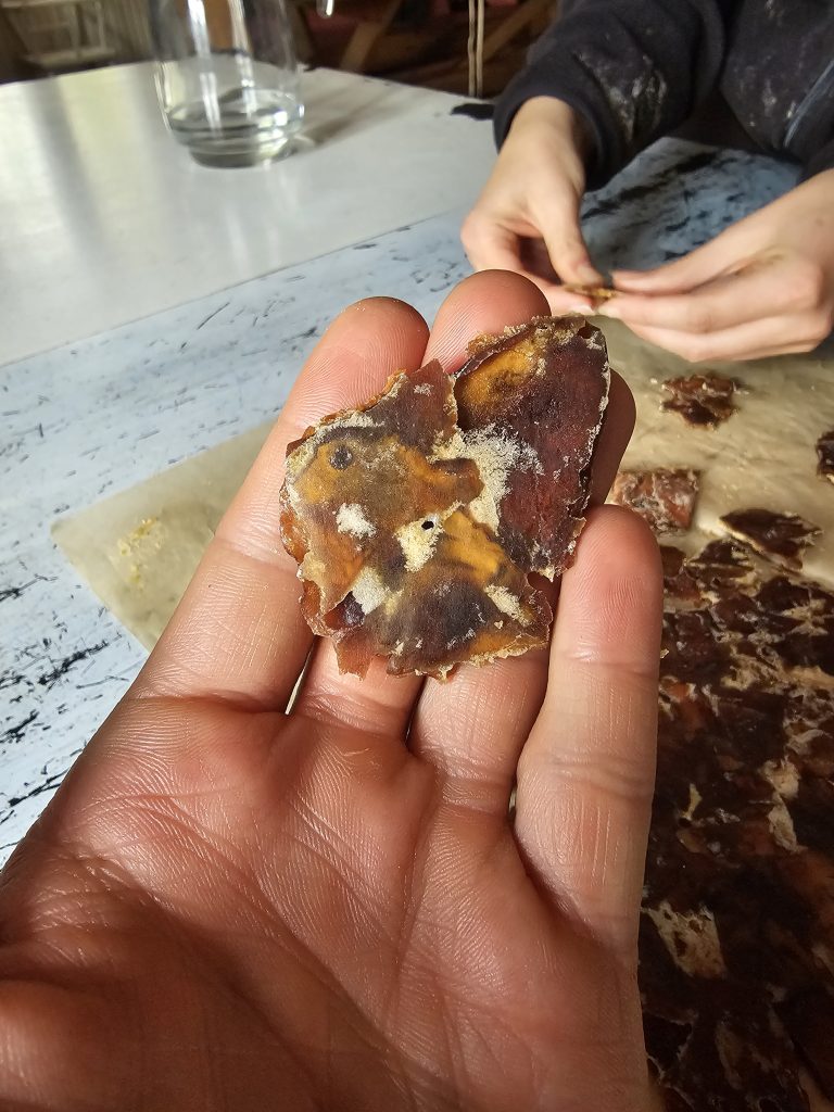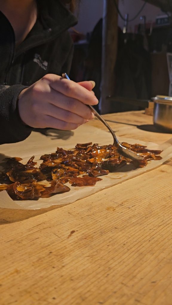 When the mixture becomes thick and slightly caramelized, pour it onto a sheet of baking paper.